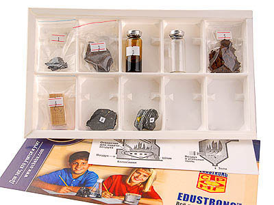 Образцы пронумерованы согласно списку и упакованы в коробку с ячейками. Пособие комплектуется руководством по эксплуатации и ламинированным вкладышем с иллюстрациями различных способов сжигания топлива.