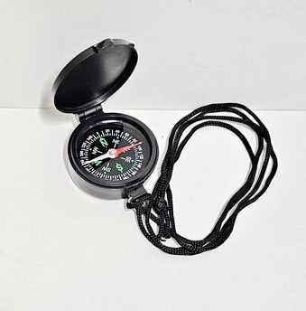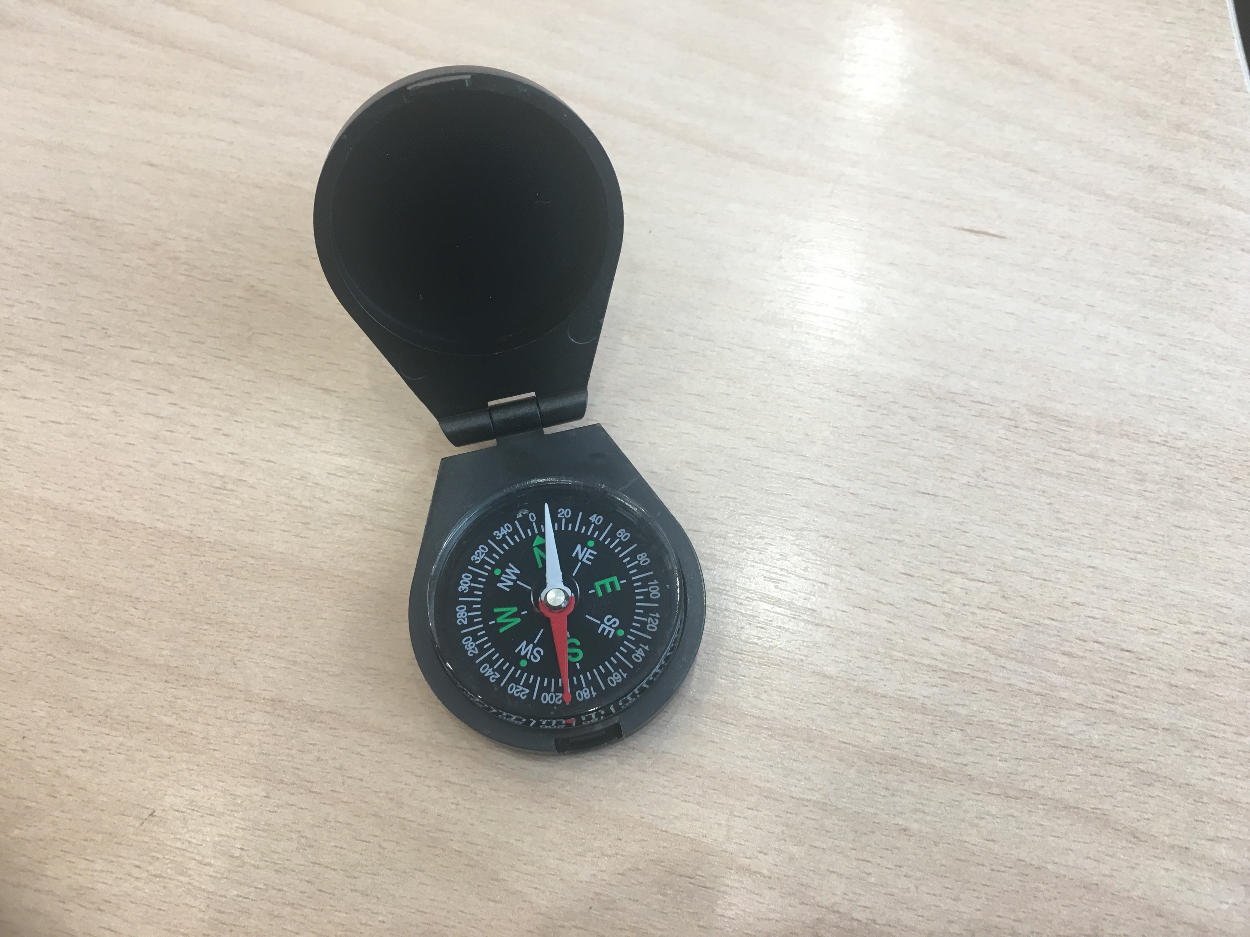 Конструктивно компас выполнен в виде основания, на котором расположены: поворотная шкала, вращающаяся на керне магнитная стрелка, откидная крышка, зеркало и визуальное устройство «мушка»-прорезь.