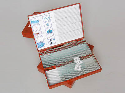 Комплектность: эпидермис листа - 15 шт., продольный разрез зерновки кукурузы - 15 шт., кожица лука - 15 шт., корневой чехлик - 15 шт., пыльца цветкового растения - 15 шт., срез ветки дерева - 15 шт., срез стебля травянистого растения - 15 шт., поперечный срез корня - 5 шт. Всего: 110 шт.