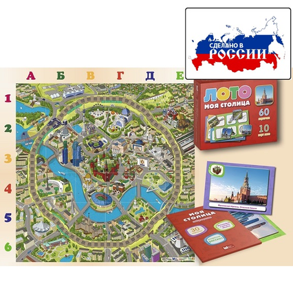 Комплект включает в себя игровое поле, набор карточек и тематическое лото. Набор карточек представляет изображения достопримечательностей столицы и краткую информацию о них. Лото позволит в игровой форме закрепить знания о столице нашей Родины Москве. Игровое поле поможет определить местоположение отдельных достопримечательностей, закрепить полученные знания о Москве, позволит организовать игровую деятельность с Лого Роботами Пчёлка и Квак (приобретаются отдельно).