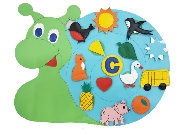К комплекту необходимо приобрести улитку, на которую крепятся съемные элементы!Логопедическая улитка - это многофункциональное логопедическое пособие для детей дошкольного возраста. Пособие предназначено для индивидуальных и групповых логопедических занятий. На домик улитки крепятся с помощью липучки буквы с картинками, гласные буквы для составления слогов, слов. Предлагаем несколько отдельных съемных комплектов: комплект гласных букв и комплекты с согласными Р, С, Ш (буква с 13 картинками, где согласный звук в разных частях слова). Многофункциональность пособия выражается в разнообразии его использования и возможности разностороннего развития ребенка:- Автоматизация звуков, слогов с этим звуком, слов и предложений; - расширение словарного запаса, обучение детей грамоте , знаниям об окружающем мире;-формирование и развивитие пространственного представления? мышления, ориентирование (верх-низ, слева, справа, между, в, на, над, под, перед, за и т.п.); - Развитие словесно – логического мышления;- Данное пособие можно использовать при работе над лексическими темами, проводить лексико-грамматические упражнения «Скажи ласково», «Мой, моя, моё», «Четвёртый лишний» и многие другие: - Картинки легко снимаются и прикрепляются на липучку, дети могут сами менять необходимые картинки, развивая мелкую моторику рук.С пособием можно работать на столе или разместить на стене с помощью люверсов.