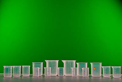 Комплектность: стакан 50 мл со шкалой (полипропилен) - 5 шт., стакан 100 мл со шкалой (полипропилен) – 5 шт., стакан 250 мл со шкалой (полипропилен) – 3 шт., стакан 500 мл с делениями (полипропилен) – 2 шт.