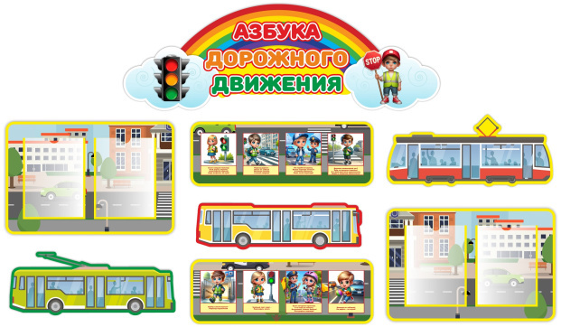 - Заголовок АЗБУКА ДОРОЖНОГО ДВИЖЕНИЯ 118х40см;