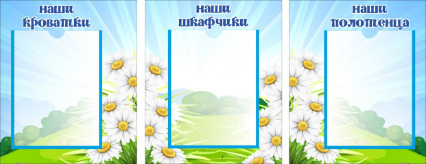 - Комплект стендов для детского сада РОМАШКИ (Наши кроватки, Наши шкафчики, Наши полотенца) предназначен для информационно-справочных материалов для родителей в детском саду.
