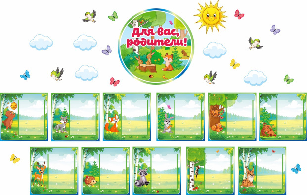 - Комплект стендов для детского сада ДЛЯ ВАС, РОДИТЕЛИ! (Лес) предназначен для информационно-справочных материалов для родителей в детском саду.