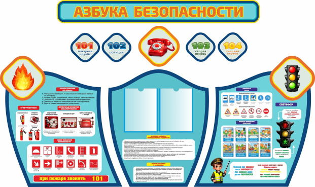 - Комплект стендов для детского сада АЗБУКА БЕЗОПАСНОСТИ предназначен для уголка безопасности в школе или детском саду.