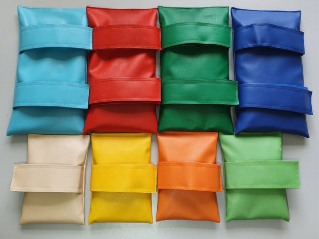 В комплект входит 8 утяжеленных мешочков разного веса. Утяжелители крепятся на руки, ноги при помощи ремешков с липучкой .