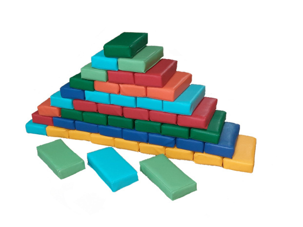 Набор состоит из 48 мягких кирпичиков размером: 20*10*5см.