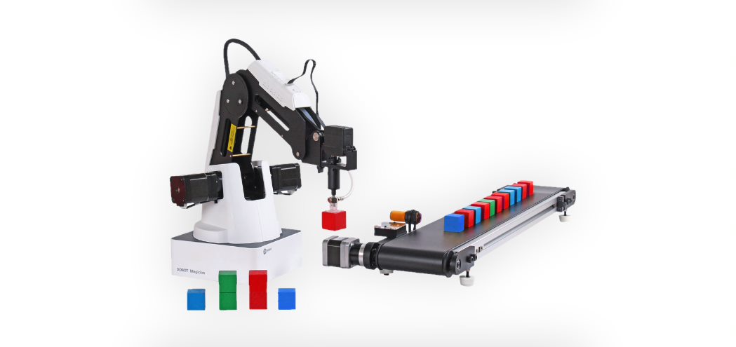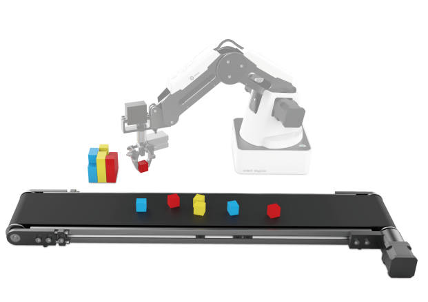 Конвейерная лента для манипуляторов Dobot Magician позволяет создать макет производственной ячейки, обеспечив транспортировку объектов манипуляций, а входящие в комплект датчики позволят изучить основы автоматизации производственных процессов.