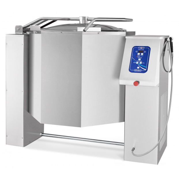 - Опрокидываемый котел без миксера имеет пульт программного управления, а также возможность регулировки температуры "пароводяной рубашки" в диапазоне 20-120 градусов.
