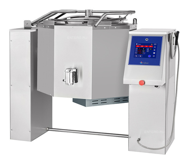 Варочный котел Abat КПЭМ-100-ОМП с функциями опрокидывания, перемешивания и охлаждения предназначен для приготовления вторых и третьих блюд, бульонов, соусов и десертов, а также для кипячения воды на предприятиях пищевой промышленности и общественного питания. Модель оснащена панелью управления с электронным TFT-экраном, пультом программного управления и сливным краном, позволяющим производить слив готового продукта без опрокидывания.