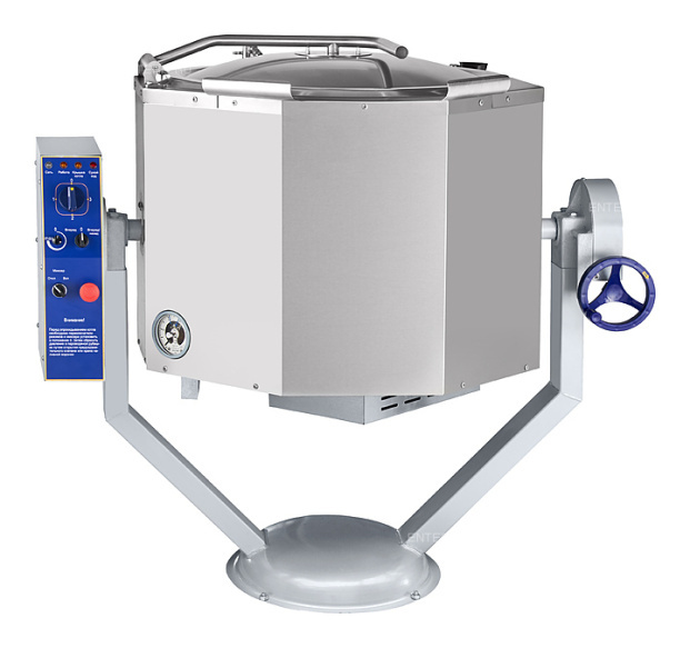 - Слив готового продукта путем ручного опрокидывания варочного сосуда с помощью червячной передачи