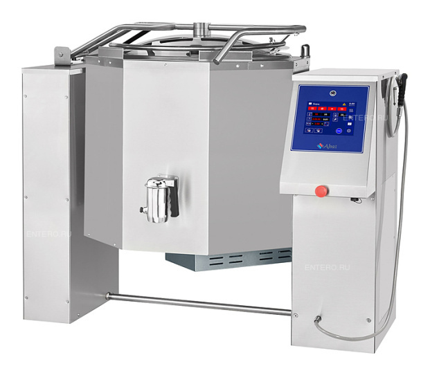 Варочный котел Abat КПЭМ-160-ОМП с функциями опрокидывания, перемешивания и охлаждения предназначен для приготовления вторых и третьих блюд, бульонов, соусов и десертов, а также для кипячения воды на предприятиях пищевой промышленности и общественного питания. Модель оснащена панелью управления с электронным TFT-экраном, пультом программного управления и сливным краном, позволяющим производить слив готового продукта без опрокидывания.