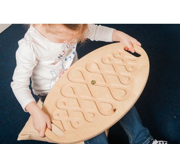 Держась за боковые ручки, лабиринт можно двигать в воздухе, можно положить на стол или на пол. Высокие бортики гарантируют, что шарик не выпадет из лабиринта.