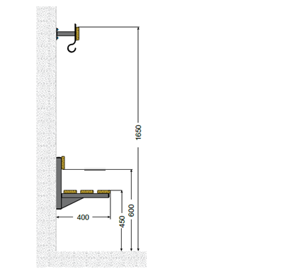 Ширина сидеенья скамьи 400 мм, длина 2000 мм, монтируется на высоте 450 мм от пола, Длина вешалки 2000 мм, монтируется на высоте 1650 мм от пола.