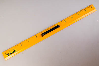 Линейка длиной 60 см со скошенными краями. На линейку нанесена шкала с ценой деления 1 см и оцифровкой через 5 см.