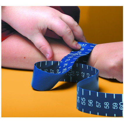 Гибкая прочная метровая линейка из водостойкого нелиняющего материала. На шкале каждые 10 см выделены отдельной толстой линией.