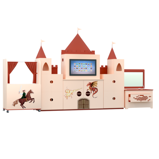 Продуманный до мелочей дизайн компактно вмещает в себя несколько игровых зон. На центральной части находится интерактивная панель со специализированным программным обеспечением. Удобные открытые книжные полки, скрытая от детского взгляда система хранения соответствуют всем требованиям ФГОС.