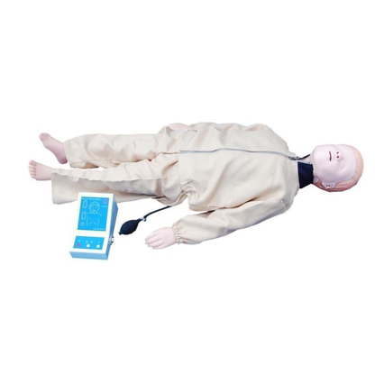 Манекен ребёнка полноростовой в одежде с контроллером для отработки действий при СЛР. Позволяет провести исследование реакции сонной артерии, компрессию грудной клетки, искусственную вентиляцию лёгких. Контроллер имеет световой индикатор и звуковое оповещение.