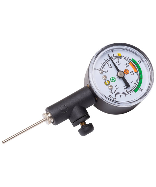 Удобный и компактный механический манометр Jögel для визуального контроля давления в мячах. В комплекте игла. Подходит для футбольного, волейбольного, баскетбольного мячей. Шкала измерения в барах.