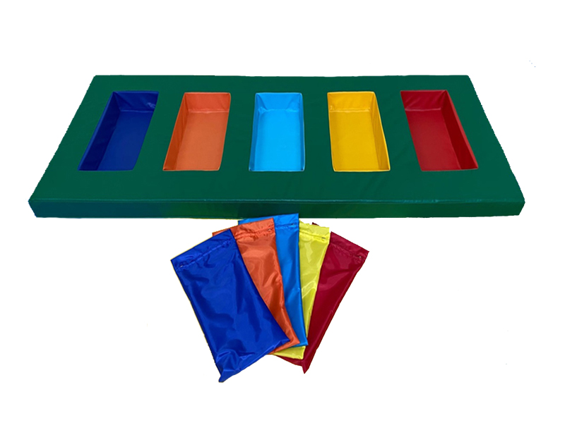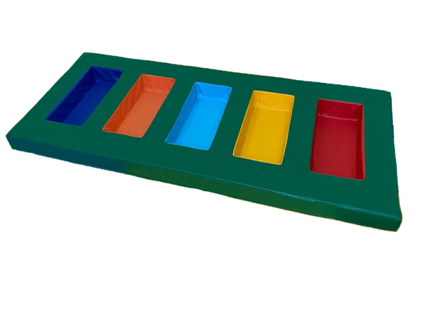 Мат с карманами предназначен для массажа ног, профилактики развития плоскостопия. В ячейки мата кладутся разноцветные мешочки, в которые насыпается различный наполнитель (крупы, зерна, шарики, шишки). Дети переступают из ячейки в ячейку массируя ноги, сравнивая тактильные ощущения, угадывая наполнитель.Матом с выемками и мешочками можно играть отдельно, мат подойдет для метания мячей или игр на сортировку, а мешочки с наполнителями можно перебирать в руках, развивая мелкую моторику или прятать в них различные предметы, чтобы угадать на ощупь.В комплекте цветных 5 мешочков с молнией для наполнителей.