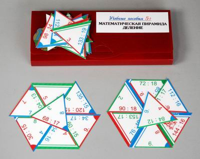 Математическая пирамида предназначена для обучения математике, как для индивидуальной, так и для групповой работы. В комплект входят равносторонние треугольники с заданиями и ответами на сторонах треугольника (49 шт.). Если правильно совместить задания и ответы, то образуется пирамида.