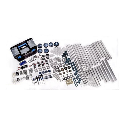 Набор содержит 1074 элемента, в том числе: 4 двигателя переменного тока, 4 серводвигателя с металлической шестерней, 4 широких колеса диаметром 96 мм, 2 двуроликовых колеса, 4 металлические шестерни на 24 зуба, 4 металлические шестерни на 40 зубьев, 4 металлические шестерни на 56 зубьев, 2 П-образные балки на 39 отверстий в длину, 2 П-образные балки на 47 отверстий в длину, 1 аккумуляторная батарея, 1 зарядное устройство, 1 пластиковая коробка с сортировочным лотком для хранения деталей, 1 набор из 6 инструментов для сборки, 1 отвертка типа «+», 1 ключ типа «шестигранник на 2 мм», 1 ключ типа «шестигранник на 2,5 мм», 2 соединительных провода длиной 200 мм, 2 соединительных провода длиной 450 мм, 1033 конструктивных и соединительных элементов.