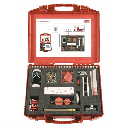 В наборе (для 1 рабочей группы или для демонстраций)*: рельсовый профиль со штативом, весы, рычаг с опорой и указателем, две чашки весов, динамометр, длок с колесами различного диаметра, оси, закрепленные на стержне, кольца с крючками, цилиндрическая пружина, неподвижный и подвижный блоки, таль, 2 блока, конструкция с двумя блоками, гири с двойным крючком, щелевые гири с подставкой, шнур.