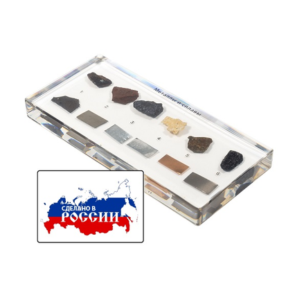 Коллекция предназначена для демонстрации различных металлов и сплавов. Рассматривая пособие (невооруженным глазом, через лупу или под микроскопом), можно изучить внешний вид и особенности металлов и сплавов, провести их анализ и классификацию.