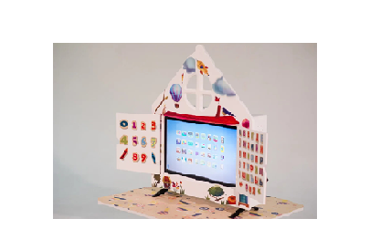 - Интерактивная настенная панель в виде теремка со ставнями, на которых нарисованы буквы и цифры (25 дюймов, Full HD, мультитач 10 касаний, intel, 8 гб RAM, SSD 120 гб, win 10)