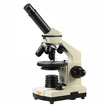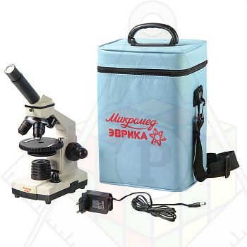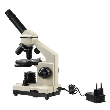 Микроскоп оснащен встроенными осветителями, которые работают от сети переменного тока 220В и от трех батареек типа АА. Универсальность питания осветительной системы позволяет использовать микроскоп и в домашних условиях, и в учебных классах и в походных условиях. А удобный компактный кейс обеспечивает сохранность оптического прибора при переноске.