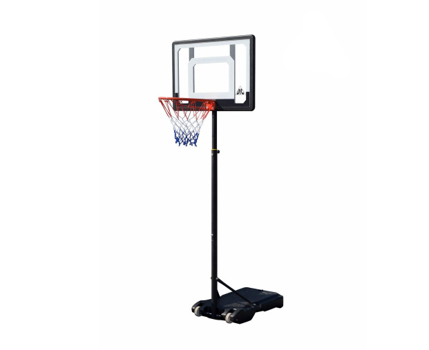Детская мобильная баскетбольная стойка. В основание размерами 75 х 45 х 13 см необходимо залить воду или засыпать песок объёмом 0,043 м3 (43 л).