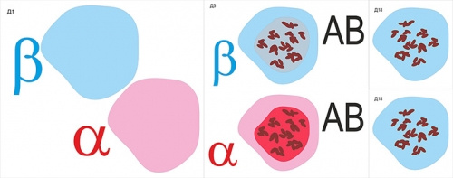 (Из них карточки со схематическими изображениями процесса агглютинации крови - Д18).
