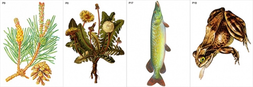 6. На карточках № Р 16-Р17 – рыбы (лещ и щука), Р18 – земноводное (лягушка), Р19 – змея (уж).