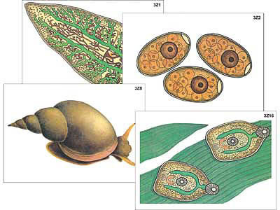 Модель-аппликация "Циклы развития печеночного сосальщика и бычьего цепня" (ламинированная)