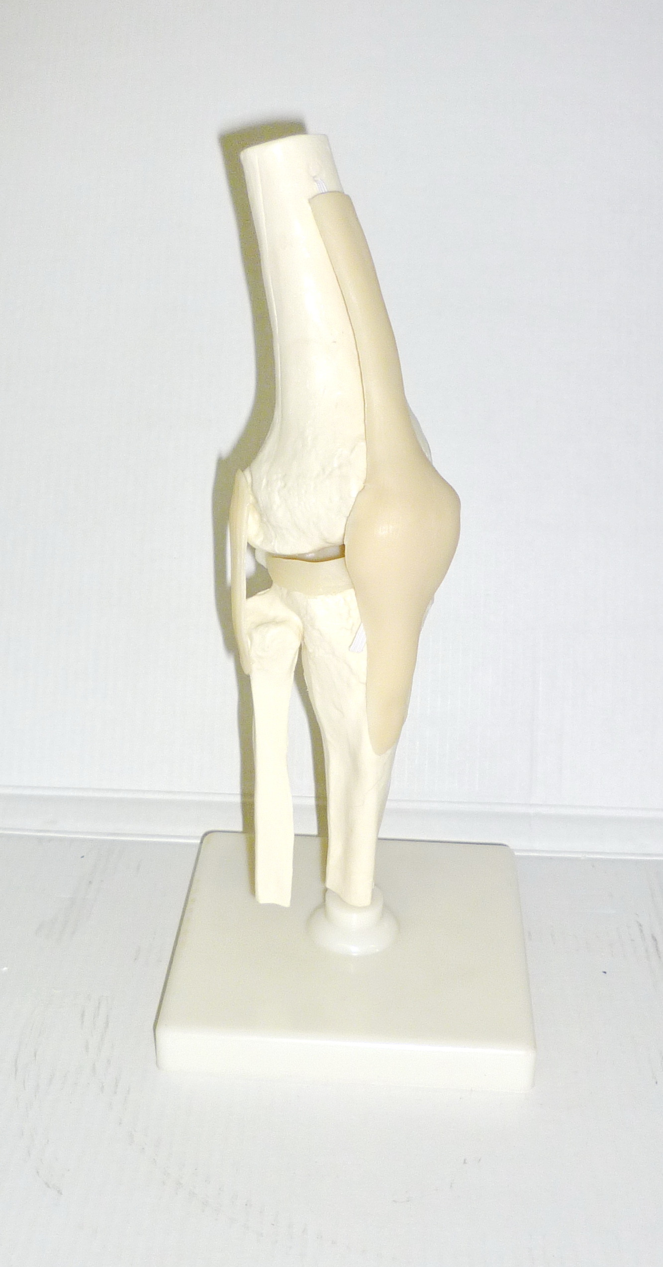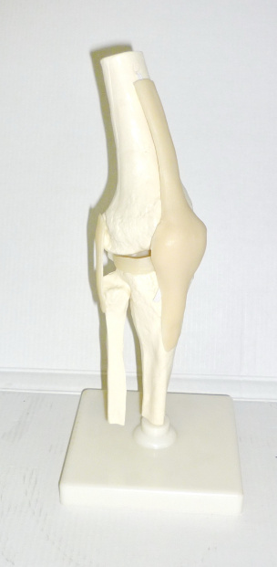 Модель представляет собой коленный сустав с боковыми связками, мениском и связкой надколенника в натуральную величину.