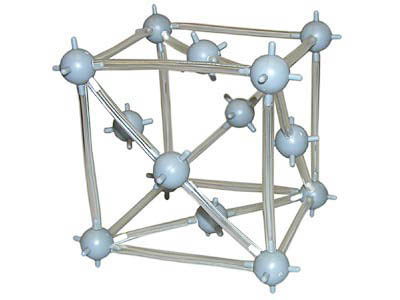 Модель предназначена для демонстрации строения элементарной ячейки кристаллической решетки меди.