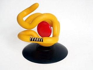 Модель представляет собой увеличенную молекулу белка из группы глобулинов. Модель отображает третичную структуру белка – глобулу, в виде толстого жгута, скрученного в клубок. Небольшая часть жгута, имитирующего нить аминокислот, вырезана. На этом участке можно рассмотреть вторичную структуру белка в виде спирали. Между витками вставлен округлый диск красного цвета - гем. Высота модели, установленной на подставке не менее 19 см.