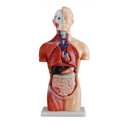 Анатомическая модель торса человека отображает строение и взаимное расположение внутренних органов в организме человека. Модель объемная, разборная на 18 частей: туловище, голова, головной мозг, трахея, пищевод и нисходящая аорта, диафрагма, легкие (4 части), сердце (2 части), желудок, печень, почки, поджелудочная железа и селезенка, кишечник, позвонки.