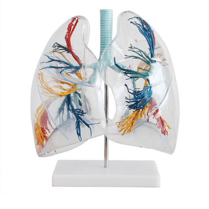 Демонстрационное учебное пособие представляет собой модель лёгких человека, увеличенную в 2 раза, на подставке. Модель лёгких выполнена из прозрачного пластика, позволяет наблюдать резветвлённую структуру бронхов. Трахея и бронхиальное дерево изготовлены из ПВХ.