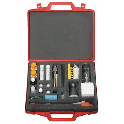 В комплекте (для 1 рабочей группы или для демонстрации)*: крахмал, гидроксид кальция, глюкоза, хлорид натрия, растительное масло, раствор йода, набор индикаторных полосок для определения белка, набор индикаторных полосок для определения глюкозы, полиэтиленовая бутылка, склянки, пробирки, чеснокодавилка, фильтровальная бумага, шланги, пипетка, нож, термометр, аксессуары.