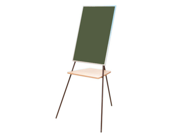 Мольберт имеет одну рабочую поверхность, выполненную из стального эмалированного листа, который обеспечивает высокую износоустойчивость и прочность. Рабочая поверхность имеет матовое антибликовое покрытие для четкой видимости изображений, рамка рабочей поверхности выполнена из стального профиля, окрашенного стойкой полимерной краской. Мольберт позволяет работать как непосредственно мелом, так и на ватмане, закрепленном на поверхности магнитами. Каркас мольбертов изготовлен из стальных труб круглого сечения, имеет порошковое покрытие, стойкое к механическим воздействиям. Внизу рабочей поверхности имеется полка, выполненная из ЛДСП 16 мм для мела, магнитов и других необходимых принадлежностей. Мольберт при необходимости складывается и занимает небольшое количество места при хранении. Размер рабочей поверхности: 500х750 мм.Габариты мольберта в сложенном состоянии 1545х700х31 мм, в разложенном виде 1435х720х880 мм.