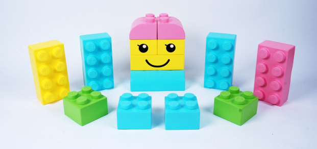 Напечатанные на желтых блоках глазки и рот придают построенным фигуркам очеловеченный вид. Забавные улыбающиеся фигурки стимулируют фантазию, воображение и речевую активность дошкольников.