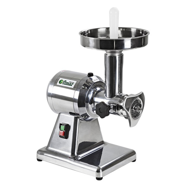 Мясорубка Fimar 12B используется на предприятиях общественного питания и торговли для приготовления фарша. Корпус изготовлен из полированного алюминия, воронка из нержавеющей стали. Диаметр загрузочного отверстия 52мм. Система Enterprise с 1 решеткой (отверстия ø 6 мм) и самозатачивающимся ножом.