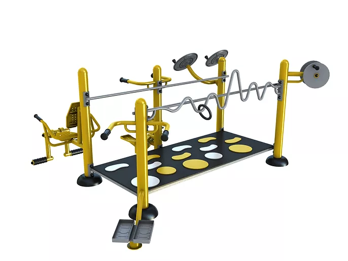 Набор из 8 различных упражнений, включая колеса тай-чи, степпер, твистер, разгибание ног, змеиный след, ручной барабан и степ-платформу.