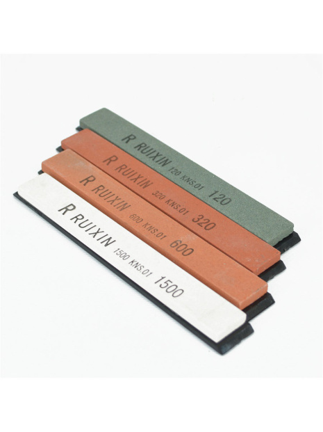 2. Материал: белый электрокорунд, зеленый карборунд, красный корунд. Зернистость: 120,320,600,1500 грит. Размеры: 150*20*5 мм.