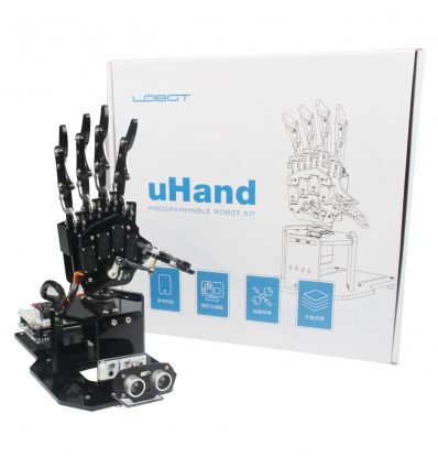 Набор для сборки механической робо-руки на плате bbc micro:bit. Функции жестикулирования, захвата предметов, распознавания цвета, возможность обнаружения предметов, умение считать на пальцах, реагирование на звуки.