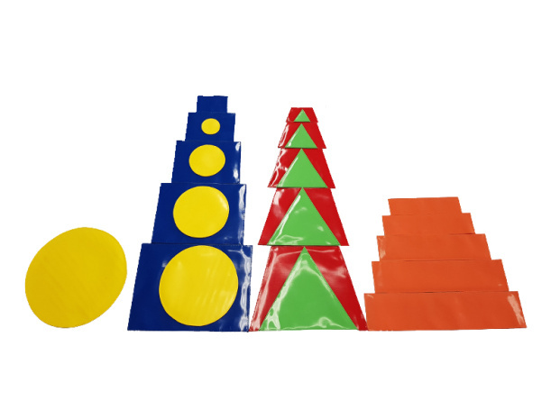 Набор предназначен для конструирования на плоскости, изучения фигур, величин, цветов и счета. Фигуры имеют карман для вкладывания друг в друга по принципу матрешки.С помощью ярких цветных геометрических фигур можно конструировать различные изображения, сооружения, целый городок! Начните с домиков различной формы, пусть дети сами выберут форму крыши и окна, треугольник или трапецию, круг или прямоугольник. Ребёнок будет подбирать подходящие по размерам и форме фигурки, разворачивать их под разными углами и соединять вместе, развивая фантазию и творческое мышление, пространственное и цветовое восприятие, комбинаторику, моторику и тактильное восприятие. Занятия с разновеликими цветными фигурами учат детей классифицировать предметы по форме, цвету, размеру, сравнивать и находить предметы по признакам, что тренирует его логическое мышление и память. В игре дети тренируют наблюдательность и внимание, усидчивость и аккуратность, воспитывают в ребенке самостоятельность, инициативу, настойчивость в достижении цели. Набор изготовлен из мягкого полимерного материала, который легко чистится, устойчив к обработке дезинфицирующими средствами.