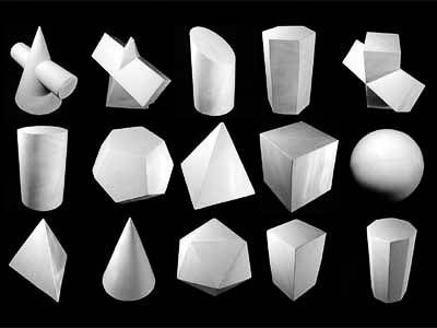 Геометрические тела изготовлены из гипса, дополнительно не окрашены.