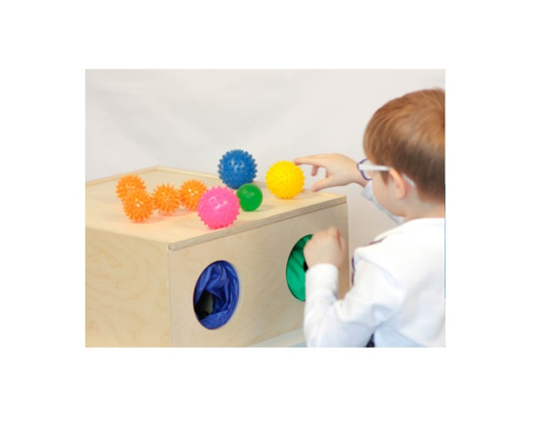 Многофункциональный игровой набор предназначен для развития тактильных ощущений и осязательного восприятия. При проведении игр тренируется память, развивается навык соотнесения информации, полученной через разные сенсорные системы, сличение признаков разной модальности (дифференцировка, обобщение). С его помощью можно формировать осязательные представления о материалах, фактуре, о тяжести и форме предметов. Использование дидактического набора «Сенсорный ящик» позволяет создать оптимальный фон для проявления природной латерализации. Развиваются навыки коммуникации и игрового взаимодействия.
